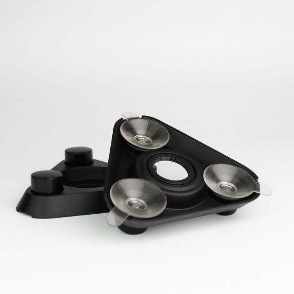 Durch das gezielte Andrücken entsteht eine kraftvolle Dreipunkt-Fixierung direkt am Glas – stabil, sicher und präzise ausgerichtet. Die Vibration verteilt sich über die gesamte Fläche.